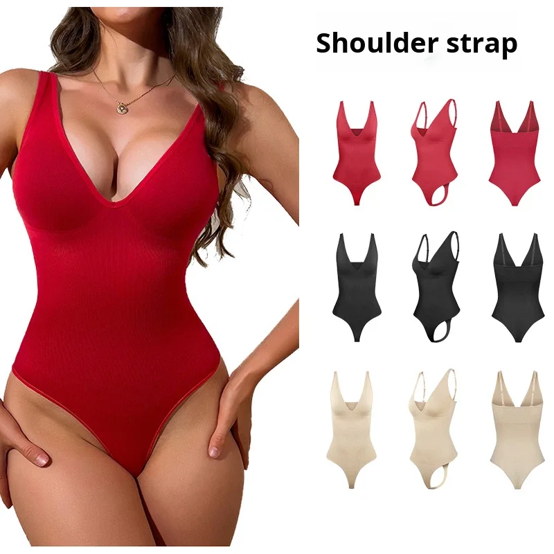 European American Cross-border Hot Sale Style Halter Neck Vest Two-Wear Waist Shaping Belly Control Low-Collar One-Piece Nylon